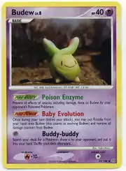 Budew (Japanese: スボミー Subomie) is a Psychic-type Basic Pokémon card. It is part of the Stormfront expansion.