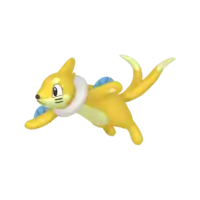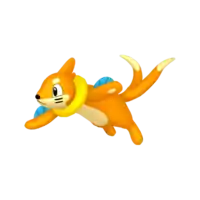 Buizel's yellow collar is a flotation sac that can be inflated when it inhales. By doing so, Buizel can keep its face above water to watch for prey movement or survey its surroundings. Conversely, it deflates this sac in order to dive. Its tails can spin to act as a propeller or slice through obstacles like seaweed, and in the anime, it is able to fly using its spinning tail.