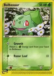 Bulbasaur (Japanese: フシギダネ Fushigidane) is a Grass-type Basic Pokémon card. It is part of the EX Team Magma vs Team Aqua expansion.