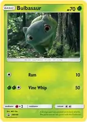 Bulbasaur (Japanese: フシギダネ Fushigidane) is a Grass-type Basic Pokémon card. It is one of the SM Black Star Promos.