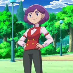 Burgundy (Japanese: カベルネ Cabernet) is a recurring character who appeared in the Pokémon anime. She is a C-class Pokémon Connaisseuse and a rival of Cilan.