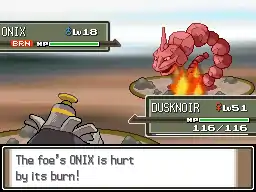 As in the main series, burned Pokémon in Pokémon Conquest suffer a penalty to their Attack, and take damage equal to 1/8 of their maximum HP at the end of their army's turn, rounded down. This occurs even if the Pokémon took no action that turn. Pokémon can be burned by attacks, abilities, or the Pyro Nodes in Dragnor. Enemy Warriors who have their Pokémon defeated by burn damage are not treated as being defeated by the player and so cannot be recruited. Burned Pokémon can be cured through certain Warrior Skills, items, or by ending a Pokémon's turn in a hot spring or a water bucket.