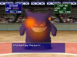 Every time a Pokémon takes damage from the burn, it now has a unique animation, separate from the poison damage animation. In Generation II only, Tri Attack can burn Fire-types.