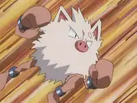 | Primeape debuted in The Fortune Hunters, and was Butch's first revealed Pokémon. In the episode, it defeated Misty's Staryu in battle, and managed to single-handedly send Jessie and James blasting off. However, it was eventually defeated by the combined efforts of Poliwhirl, Totodile, and Pikachu.