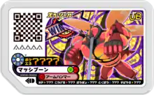 More Full-Force Battle ~Ultra Beast Challenge!~ events were held as part of the Coro Tour 2019, present at a number of ÆON Mall venues across Japan between July 21 and August 25, 2019, and again at any participating store with a Pokémon Ga-Olé arcade machine between August 17 and September 1, 2019. The format was the same as the World Hobby Fair event: entrants who successfully defeated all 3 opponent Pokémon could choose to dispense a "WINNER" version of either this disk, the Celesteela disk, or the Guzzlord disk. Entrants who were not successful were awarded a non-winner version of either this disk, the Celesteela disk, or the Guzzlord disk at random. The disks awarded at stores with Pokémon Ga-Olé arcade machines are colored gray instead of purple. These events also distributed a Ga-Olé Pass sticker featuring the 3 focal Ultra Beasts to all participants and awarded a different "WINNER" certificate featuring the event logo to the player achieving the highest score.