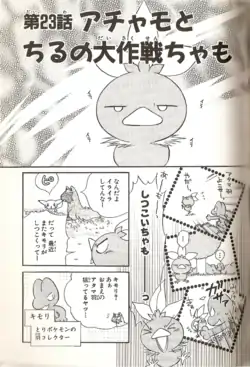(Japanese: アチャモとちるの大作戦ちゃも Achamo and Tyl's Big Strategy (chamo)) is the twenty-third chapter of the Pokémon Chamo-Chamo ☆ Pretty ♪ manga created by つきりのゆみ Yumi Tsukirino.
