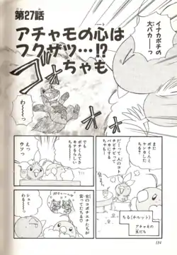 (Japanese: アチャモの心はフクザツ!?ちゃも Achamo's Heart is Complicated!? (chamo)) is the twenty-seventh chapter of the Pokémon Chamo-Chamo ☆ Pretty ♪ manga created by つきりのゆみ Yumi Tsukirino.