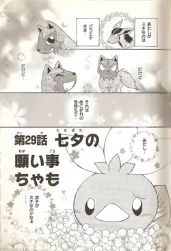 (Japanese: 七タの願い事ちゃも Tanabata Wishes (chamo)) is the twenty-ninth chapter of the Pokémon Chamo-Chamo ☆ Pretty ♪ manga created by つきりのゆみ Yumi Tsukirino.