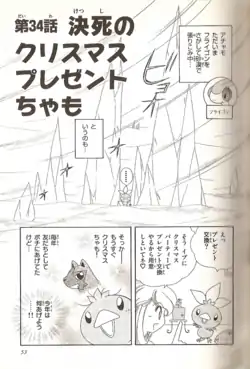 (Japanese: クリスマスプレゼントチャモ Christmas Present (chamo)) is the thirty-fourth chapter of the Pokémon Chamo-Chamo ☆ Pretty ♪ manga created by つきりのゆみ Yumi Tsukirino.