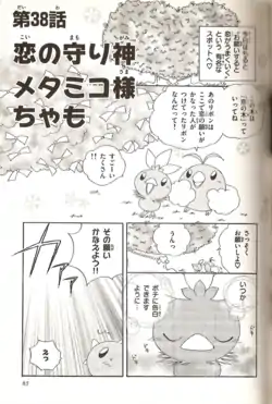 (Japanese: 恋の守リ神メタミコ様ちゃも The Guardian God of Love Metamiko (chamo)) is the thirty-eighth chapter of the Pokémon Chamo-Chamo ☆ Pretty ♪ manga created by つきりのゆみ Yumi Tsukirino.