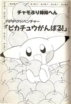 (Japanese: がんばってピカチュウ! Good Luck, Pikachu!) is a bonus chapter in the first volume of the Pokémon Chamo-Chamo ☆ Pretty ♪ manga created by つきりのゆみ Yumi Tsukirino. It is listed as a "sister story" to Chamo-Chamo ☆ Pretty ♪ and focuses on Hazel and the other main characters of Magical Pokémon Journey.