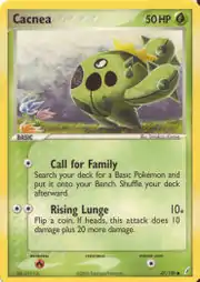 Cacnea (Japanese: サボネア Sabonea) is a Grass-type Basic Pokémon card. It is part of the EX Crystal Guardians expansion.