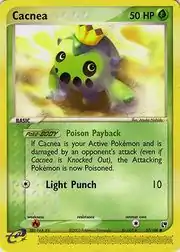 Cacnea (Japanese: サボネア Sabonea) is a Grass-type Basic Pokémon card. It is part of the EX Sandstorm expansion.
