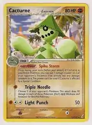 Cacturne δ (Japanese: ノクタス δ Noctus δ) is a Fighting-type Stage 1 Pokémon card. It is part of the EX Crystal Guardians set.