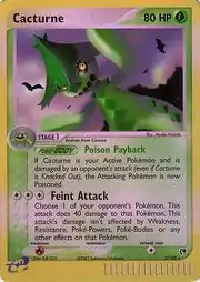 Cacturne (Japanese: ノクタス Noctus) is a Grass-type Stage 1 Pokémon card. It is part of the EX Sandstorm expansion.