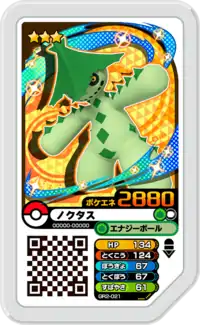 Cacturne (Japanese: ノクタス Noctus) is a Grade 3 Pokémon Ga-Olé disk. It is part of the second Grand Rush set.