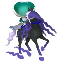 When fused with Spectrier, it becomes swift to the point it can run a thousand miles within a single day. The strength of Spectrier's spectral power also increases. Shadow Rider Calyrex can infuse Spectrier with its psychic powers in order to create countless small will-o'-the-wisps. It uses the wisps to rain down on others like meteors before it steals the opponent's life-force with burning heat. It can also transform the steed's spectral aura into a black mass. This mass can absorb the life-force and souls of any being's energy like a black hole.[4]