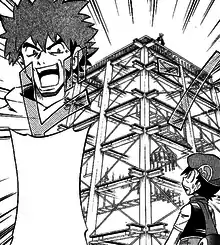 The Canalave Gym appeared in Challenge! The Fortress Of Steel!!. The Gym contains a giant steel structure, dubbed by Byron as "The Fortress of Steel". On the way to the Gym Leader, the challenging Trainer must face a variety of obstacles, including back-and-forth-swinging steel beams, a backwards-moving walkway, and a group of Steelix and Onix. Only those Trainers who clear all the obstacles may face Byron in a battle at the top of the fortress.