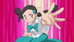 She made another appearance in Double-Time Battle Training!, where she watched Zoey defeat Rebecca in the Brussel Town Pokémon Contest, earning her fifth Ribbon. Enthralled by Zoey's battle, she did not even realize that Ash, Dawn, and Brock were sitting next to her in the Contest Hall.
