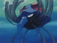 | Captain Marius's Tentacruel rescued Ash and his friends from the whirlpool riddled waters off Blue Point Isle after the group were blasted off their boat by Team Rocket.