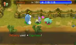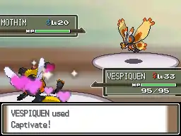 In Explorers of Time, Darkness and Sky, Captivate is a move with 20PP that ignores accuracy and evasion checks. The user targets enemy in front of it, lowering their Special Attack by 2 stages. This move works only if the user is the opposite gender of the target. This move is affected by Taunt and Magic Coat.