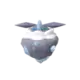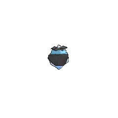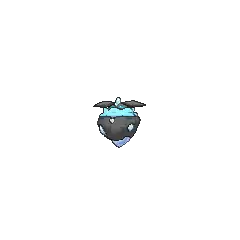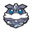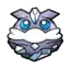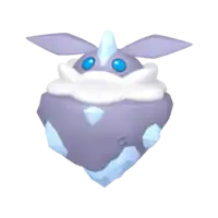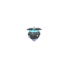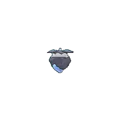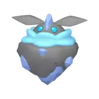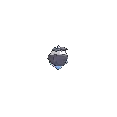 Carbink is a gray, rock-like Pokémon with a conical body. Its body has light blue crystals of various shapes and sizes embedded in it. A white, fluffy collar surrounds its small head. It uses this soft mane to polish the gems of other Carbink. It has bright blue eyes, a light blue crystal on top of its head, and flat diamond-shaped ears. Due to its small stature, it ties with Minior and Dwebble as the shortest Rock-type.