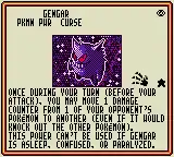 Each attack of a Pokémon has its own screen (there are either 1 or 2 attacks per Pokémon), with its description, damage dealt, and Energy cards required. Some moves have no description, in which case they only deal damage with no additional effect. Some moves don't display any damage number, indicating they don't deal damage at all.