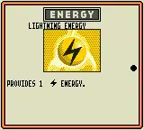 Energy cards have a large "Energy" text at the top. This is followed by the card's name, image, expansion symbol (only for the three new Special Energy cards added in the second game), rarity symbol, and description.