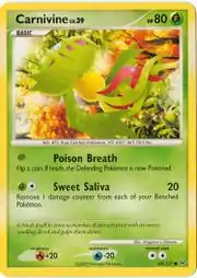 Carnivine (Japanese: マスキッパ Muskippa) is a Grass-type Basic Pokémon card. It is part of the Platinum expansion.