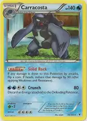 Solid Rock is an Ability in the Pokémon games that Carracosta can have. Crunch is a move in the Pokémon games that Carracosta can learn. This card's Pokédex entry comes from Pokémon Black.