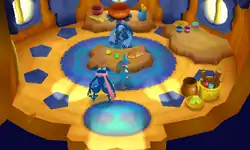 Later, while the player and partner are looking for Ampharos, they run into Carracosta and ask if he has seen him. After thinking for a bit, he states that he saw Ampharos on his way back from the Oran Orchard, and that he was heading towards Poliwrath River. He forbids the player and partner from going to the river as it is the home of the Poliwrath Brothers and is thus a dangerous place. When the partner agrees not to go, he is skeptical and reiterates that he does not want them to go to or even talk about such a place.