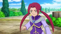 Carrie is one of Olympia's many apprentices, noted in particular for being extremely reckless and eager to jump to conclusions. During one of their meditation sessions, Olympia had a vision of an impending disaster that would affect the Kalos region, and revealed that Ash, his friends and Professor Sycamore would be involved. This led to Carrie believing that the people Olympia identified posed a threat to Anistar City and Kalos. When Sycamore arrived in town to study the sundial, she attacked him and destroyed his scientific equipment, demanding that he leave. Shortly after, Ash arrived on the scene, and Carrie went on to attack him as well.