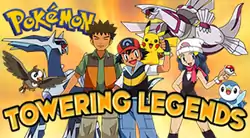 Towering Legends is one of Cartoon Network's Pokémon games. In Towering Legends, there are differently colored pieces that represent a type. The player is trying to control one piece and stack it with the other pieces of its type. However, if the tower gets into contact with a piece of another type, an explosion happens and the pieces involved in the explosion are rearranged around the level. The player must clear the board in a certain time to go into the next level. The more pieces there are in the tower, the bigger the circle that appears around it is. Any pieces that match the tower's type in this circle become a part of the tower. After every odd level, in the screen to go into the next level or to retry the level, it shows facts about Dialga and a blurred picture of Palkia. After every even level, facts are shown about Palkia and a blurred picture of Dialga.