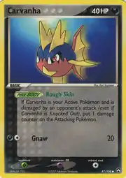 Carvanha (Japanese: キバニア Kibanha) is a Darkness-type Basic Pokémon card. It is part of the EX Power Keepers expansion.