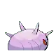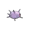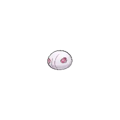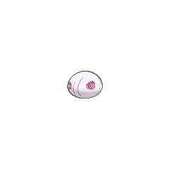 Cascoon is a round, cocoon-like Pokémon. It is covered in purple silk, except for two holes where its red eyes are visible. The soft silk hardens into a tough cocoon that is able to endure attacks, and Cascoon will not move even when it is attacked. However, it never forgets the pain it endures and seeks revenge upon evolution. It lives in forests, where it hides underneath large leaves and inside the gaps of tree branches. Additionally, it camouflages itself by attaching dead leaves to its body. As its cells create energy for evolution, the inside of the cocoon becomes hot. Cracks start to form in its casing when evolution is near.