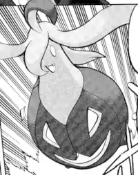 | Gourgeist is Cassius's only known Pokémon. It was first sent out to help Y, Shauna and Tierno stop a Team Flare Grunt's four Espurr. It confused one Espurr and used its arms to capture the other three, defeating them. It also shielded X, Shauna, Tierno and Trevor when the helicopter Cassius was flying crash-landed. At the Pokémon Village, it destroyed the device used to control Emma's Expansion Suit, freeing her from Lysandre's control in the process.