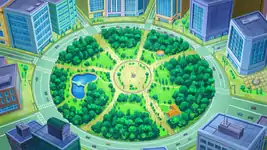 Only accessible via the Castelia Sewers in Black 2 and White 2, Castelia Park is a small area enclosed by buildings. Similar to (but much smaller than) the National Park in Johto, it is shaped like a Poké Ball. Dark grass is on the right, with regular tall grass on the left and a tree in the middle. It is said to be "where it all began" for Castelia City.