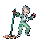 In Black and White, the president is an elderly man who disguises himself as a Janitor to trick people. He will give the player an Exp. Share after he is defeated. In Black 2 and White 2, it is revealed that the old president has retired to become a full-time janitor. His successor is his grandson, School Kid Neil. The janitor cannot be battled, but will still give the player an Exp. Share when they enter the building.