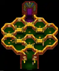 The Gym's interior has been redesigned. The Gym is now made up of multiple levels of silk, and the player must travel through silk cocoons to go between the different levels, battling Harlequins along the way, eventually making their way to the top floor, where Burgh is. The top floor is filled with colored paint on the floor, and Burgh's paintings are hung around the room. After reaching Burgh's room, the player is able to jump down a hole on the left side that leads to the bottom of the Gym.