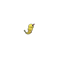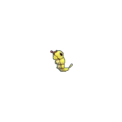 A Caterpie appeared in As Gastly as Before. With the help of her fishing rod and Red's Pika, Yellow saved a Caterpie from its tree, which was targeted by a Fire attack. Caterpie then followed Yellow to Route 9, where she and Blue were training. It took Yellow a whole day to properly catch this Caterpie with a Poké Ball, but once she prevailed, Yellow welcomed Caterpie to her team and called it "Kitty". It then became one of Yellow's most useful Pokémon, whose string was commonly used to make floaters. However, in the battle against Lance, Yellow did not have a Pokédex, which she needed to stop her Pokémon from evolving. As a result, Kitty evolved into Metapod and then into Butterfree right afterwards.