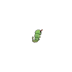 As Caterpie grow and develop over time, it will shed its skin many times before finally cocooning itself in thick silk. It can also spit this silk in order to entangle foes as seen in the anime. It has a voracious appetite, which drives it to eat a hundred leaves a day. It will even eat leaves bigger than itself. According to Pokémon Adventures, its favorite food is the Vermilion flower. Caterpie lives in temperate forests and jungles.