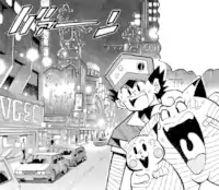Celadon City appeared in Pikachu Was Kidnapped!!, where Red and his Pokémon ventured to the Game Corner, winning a lot of Coins. Team Rocket tried to steal Red's Pikachu, but were stopped by Clefairy.