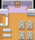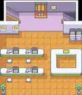 Here, a receptionist welcomes customers and directs them to a board that describes the store layout. This is where the Poké Mart deliveryman can be found.