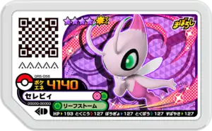 Celebi (Japanese: セレビィ Celebi) is a Grade 4 Pokémon Ga-Olé disk. It is part of the fifth Grand Rush set.