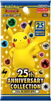 Pokémon TCG: Celebrations (Japanese: 25th アニバーサリーコレクション 25th ANNIVERSARY COLLECTION) is a special expansion released during the Sword & Shield Series of the Pokémon Trading Card Game. In Japan, it is the name given to the seventh subset released during the Sword & Shield Era. The expansion celebrates the 25th anniversary of the TCG, which was launched in Japan on October 20, 1996.