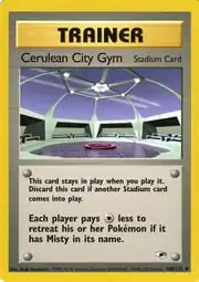 Cerulean City Gym (Japanese: ハナダシティジム Hanada City Gym) is a Stadium card. It was first released as part of the Gym Heroes expansion.