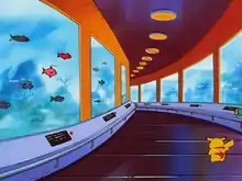 Several Pokémon, mostly Water types, reside in the Gym's aquariums, though are not known to have been used in Gym battles.