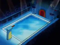The Cerulean Gym appeared in Suddenly Starmie, where Red and Misty trained together at the Gym for a few days to improve their skills in order to fight Team Rocket. After the training was complete, Misty gave Red a Cascade Badge.