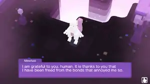 The only Pokémon the player encounters here is Mewtwo who reveals that it has somehow been controlling MoBee to lead the player to free it from its longstanding bonds. Once Mewtwo is defeated, Mewtwo realizes that it has not fully recovered and leaves without further resistance as it owes the player for having liberated it.