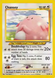 Chansey (Japanese: ラッキー Lucky) is a Colorless-type Basic Pokémon card. It is part of the Neo Destiny expansion.